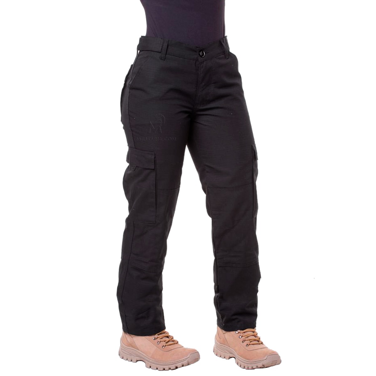 Calça Feminina Tática Reforçada Preta Segurança e Militar