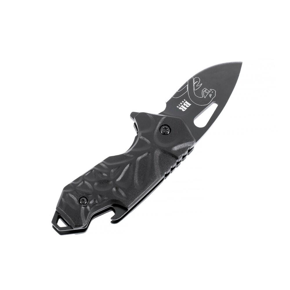 Versátil, o Canivete Tático ÍNDIGO é compacto, vem com abridor de garrafa e furo no cabo para passagem de fiel. Possui abertura rápida assistida por mola (spring assisted), lâmina em aço inox 420 com 3 mm de espessura e clip tático de fixação.