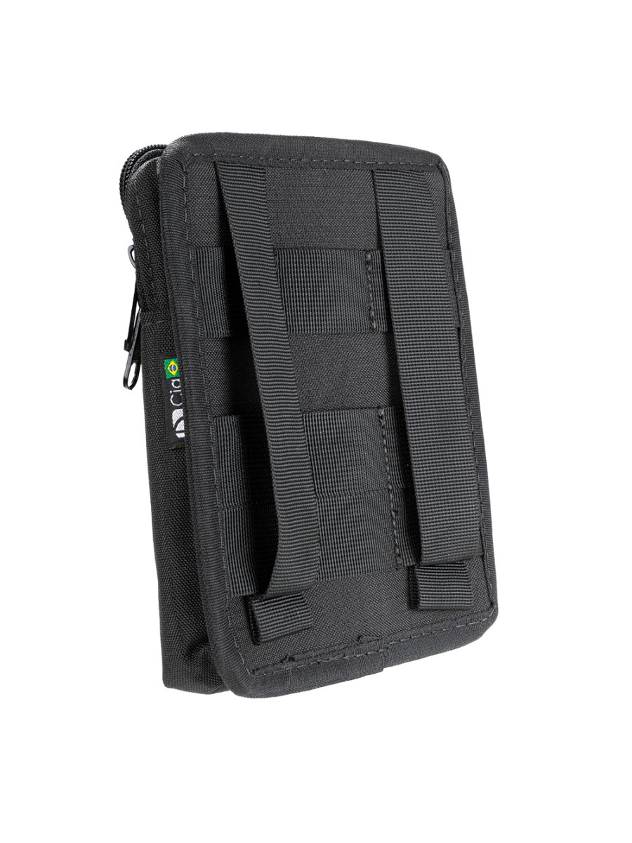 O porta acessório modular CM2002 é confeccionado em tecido 100% poliéster. Sua parte traseira possui o sistema modular, permitindo seu uso em coletes e cintos modulares. Possui fechamento em zíper na parte superior e seu interior é feito em aerado.