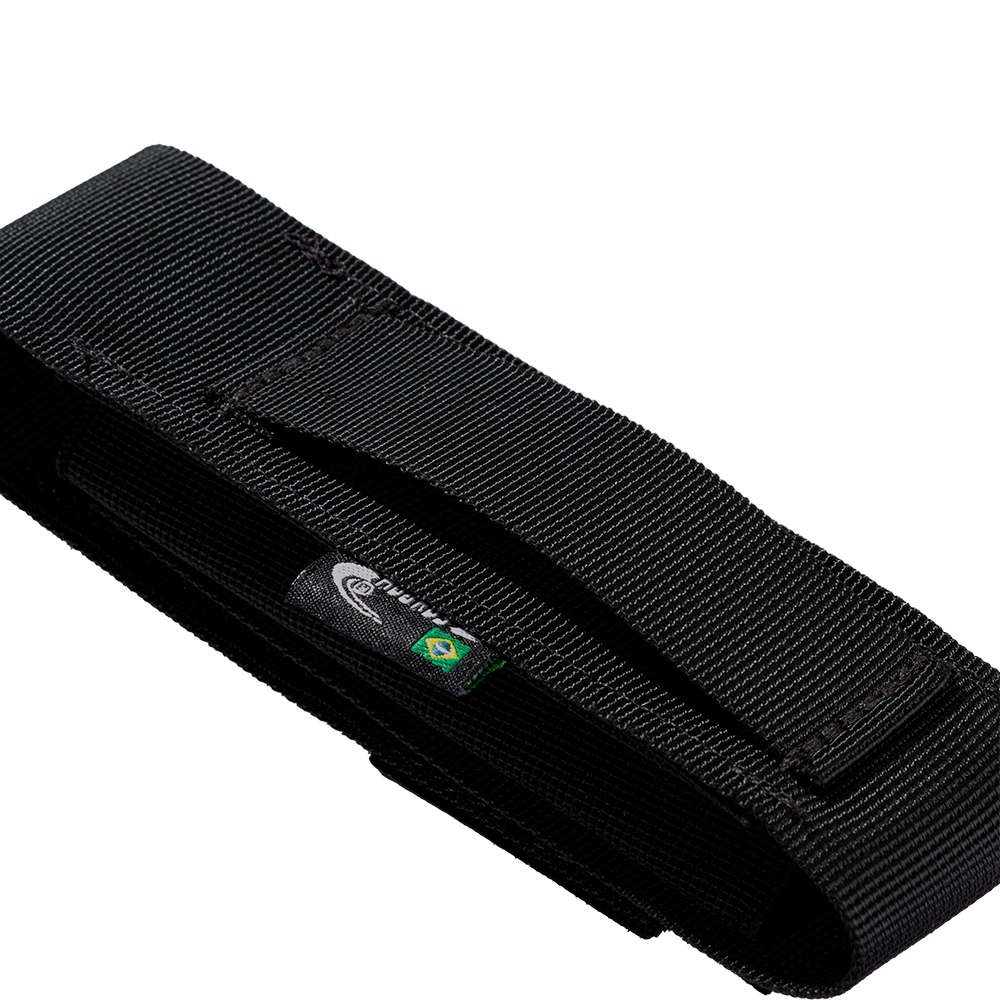 O Porta Canivete FB835 é confeccionado em fita de nylon e elástico nas laterais, com fechamento em permite que seja utilizado diversos tamanhos de gás. Além de contar com passador de cinto na região traseira.